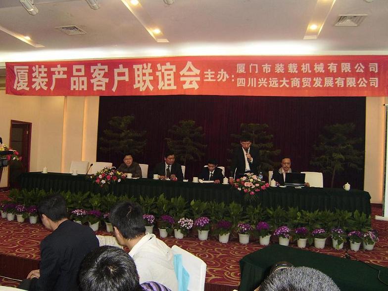 2009年3月21日上午,廈門市裝載機有限公司及四川興遠大商貿(mào)發(fā)展有限公司共同舉辦的“廈裝機械客戶聯(lián)誼會”在什邡市長江賓館舉行。廈門市裝載機有限公司副總經(jīng)理王曉忠、技術(shù)中心副主任王理和什邡市工商聯(lián)主席鄧家宜出席會議。
